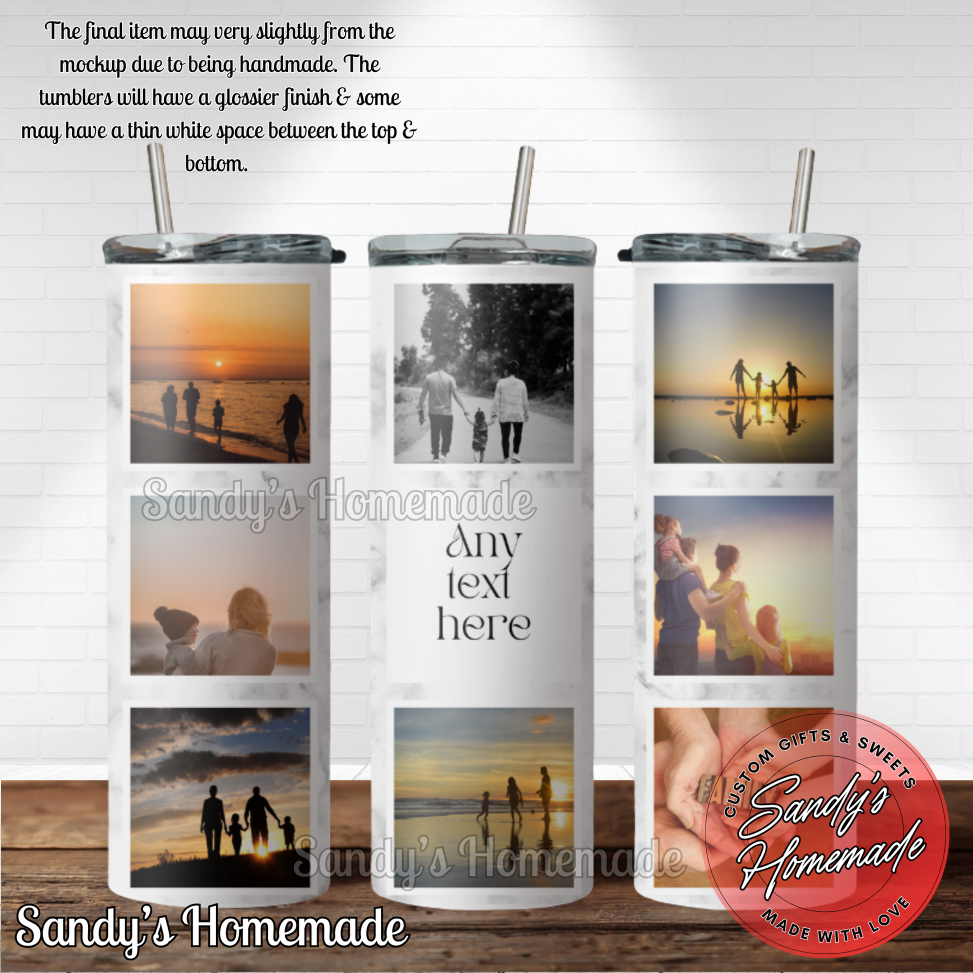 Custom photo tumbler with any text and 8 photos